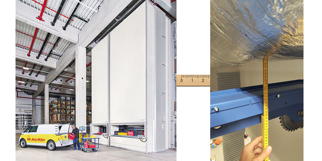 Hver høydemillimeter tas i bruk, enten det gjelder små komponenter eller større deler. Systemet kan bygges opp til over 20 meter i høyden, tilpasset byggets arkitektur. Dette gir lavere krav til gulvareal – og potensielt lavere arealutgifter. -